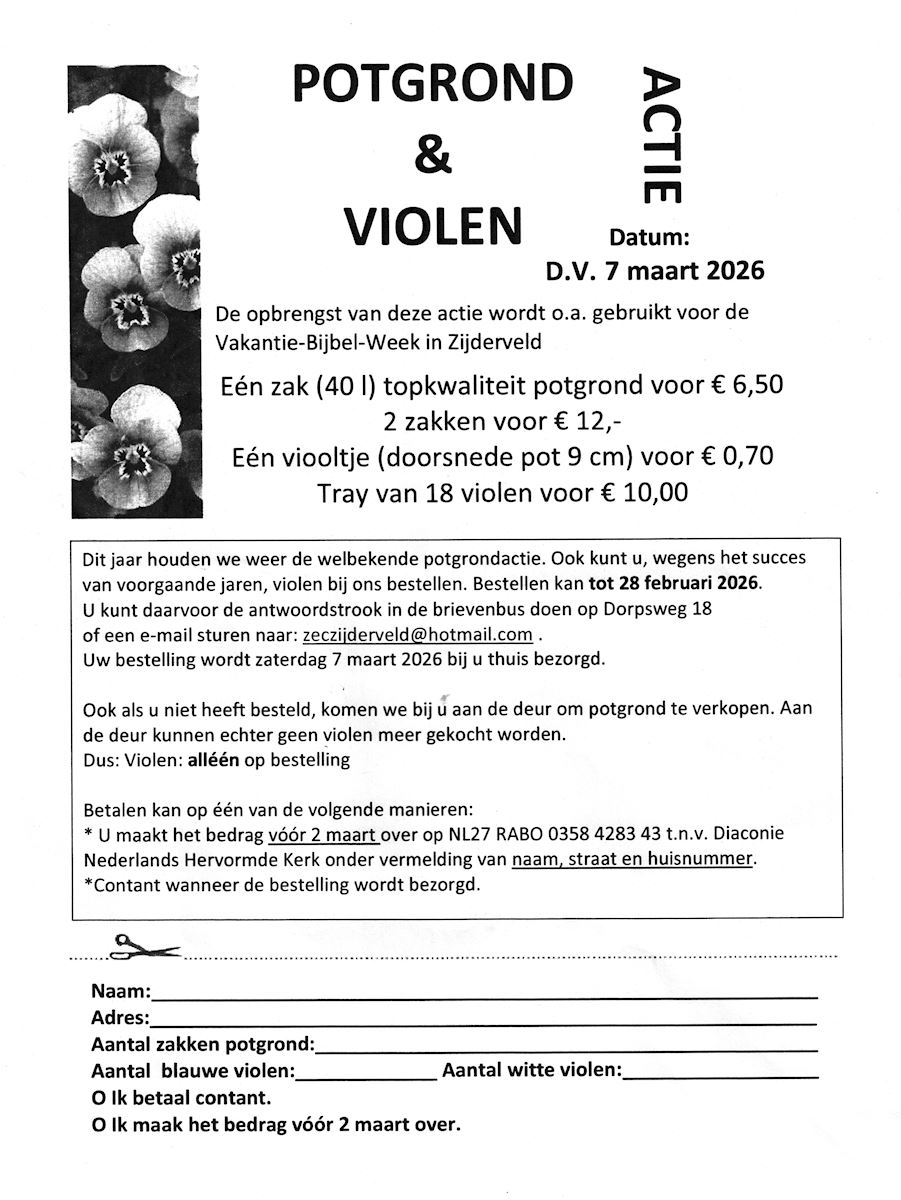 Als u nieuwe items wilt plaatsen kunt u die mailen naar: website@hervormdzijderveld.nl